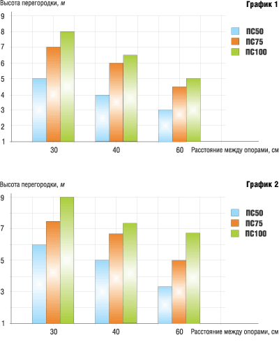 графике 1 мы показали зависимость высоты стены от расстояния между